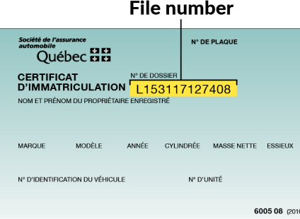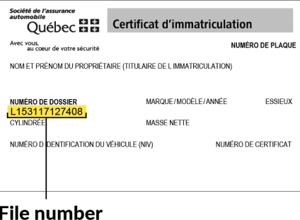 If your vehicle registration certificate is white, the identification number appears below “Numéro de dossier”.
