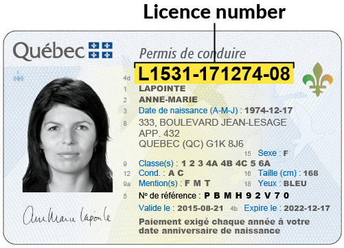 You will need your SAAQ identification number (1 letter followed by 12 digits).